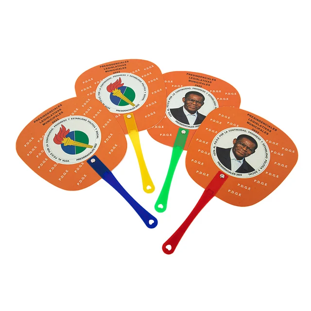 ด้ามยาวขายส่งที่กำหนดเองโฆษณาพลาสติก Pp โฆษณาพลาสติกมือพัดลม